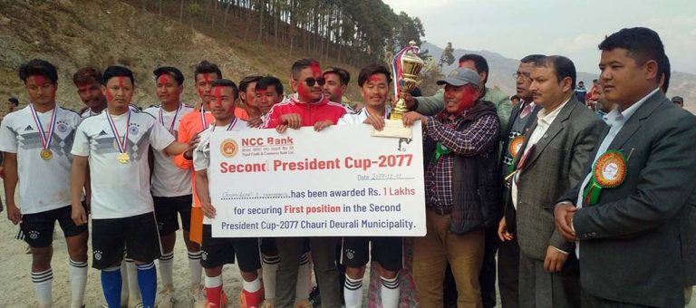 चौंरीदेउराली/काभ्रे जिल्लाको चौंरीदेउराली गाउँपालिकाले आयोजना गरेको अध्यक्ष गोल्ड कप फुटबल प्रतियोगिता–२०७७ को उपाधि वडा नं. २, नाग्रेगगर्चेले हातपार्न सफल भएको...